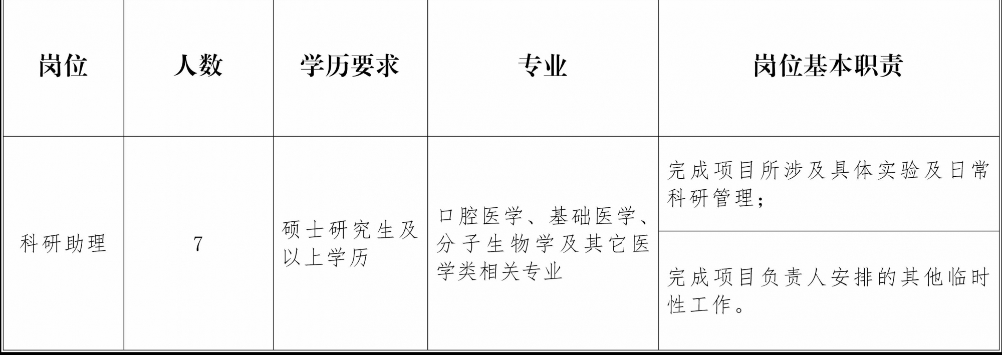 昆明医科大学附属口腔医院(云南省口腔医院)是集医疗、教学、科研、社会服务为一体的省级口腔专科医院,因科研项目工作需要,特向社会诚聘科研助理岗位工作人员,现将有关事项告示如下: